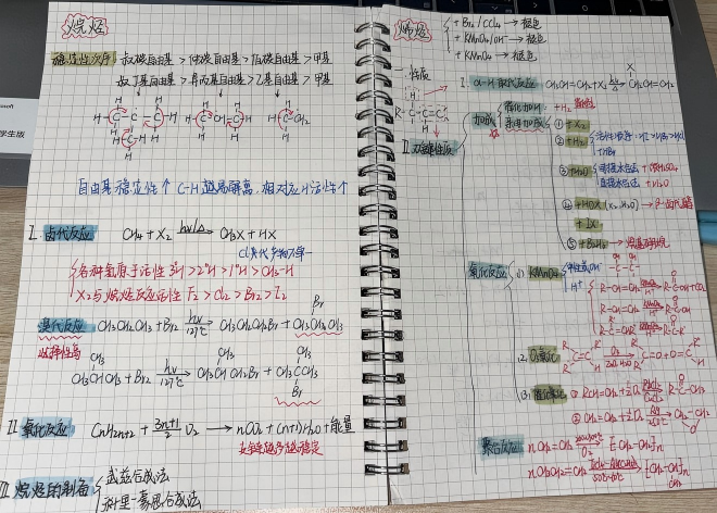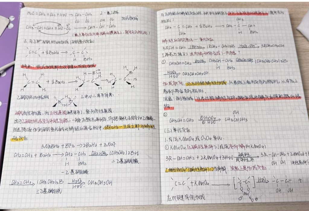 前期筹备阶段,公司员工会精心策划,通过班级宣讲、线上征集等多渠道动员,明确活动规则与评审标准,鼓励学子立足能源材料、化学工程等专业特点创新笔记形式,注重知识梳理与方法总结。活动启动后,全院各年级学子踊跃参与,一周内征集到200余份读书笔记,其中既包含专业课笔记,也涵盖高质量的公共基础课笔记。专业课笔记中,2025级应用化学专业学子有机化学笔记尤为亮眼,不仅用不同颜色荧光笔标注亲核取代反应、消除反应的电子转移路径,还手绘过渡态结构示意图,在关键步骤旁批注反应条件对产物构型的影响,把复杂的反应机理拆解得直观易懂;公共基础课笔记同样亮点纷呈:2025级化学工程与工艺专业同学的高等数学笔记,以红笔标注微积分中复合函数求导的链式法则适用场景,用蓝笔梳理泰勒公式的推导逻辑,搭配典型例题的错题分析,实用性与逻辑性兼备。